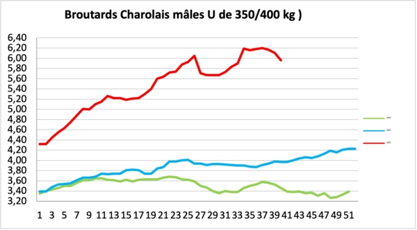 Broutards – Si la semaine dernière les ventes d’anticipation étaient mesurées, elle semble beaucoup plus marquée cette semaine. La DNCB impacte sérieusement le commerce, avec des acheteurs qui profitent de sorties supplémentaires pour faire pression sur les prix. Ces volumes sont notamment disponibles dans le Massif central et les régions proches de la ZR DNCB. Même si cette dernière n’a pas évolué en fin de semaine, certains éleveurs sont vendeurs pour limiter le risque de blocage. D’autres font le choix de ne pas céder à la panique et gardent leurs animaux pour profiter d’une herbe abondante. Les volumes qui partent avec anticipation ne seront plus là pour alimenter le marché sur la fin de l’automne. Le commerce est plus compliqué avec des tarifs qui se tassent sur pratiquement toutes les gammes de poids dans les Charolais. Les repousseurs du centre sont en retrait face au risque DNCB, ce qui permet des envois plus importants sur les ateliers du grand ouest. La situation est moins marquée dans les Limousins ou les Blonds d’Aquitaine ou seuls les lourds sont touchés.
