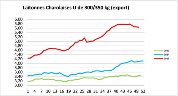 Si les volumes tendent à s’amoindrir, l’activité commerciale reste assez calme dans son ensemble. Les places vont se libérer avec les sorties de fin d’année, mais il faudra attendre le début d’année pour ressentir une reprise de la demande. Le niveau élevé des prix des jeunes bovins sur cette fin d’année est là pour compenser la hausse du prix des broutards, mais s’il est probable que 2026 suive cette même tendance, l’ampleur des prix ne pourra suivre au risque de perdre les consommateurs.