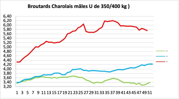 Le recul de l’offre notamment dans les animaux lourds permet un certain rééquilibrage des prix après les baisses de ces dernières semaines. Les bons broutards de moins de 320kg restent demandés, même si les tarifs se montrent en replis par rapport aux sommets d’octobre. Les engraisseurs sont néanmoins très prudents dans les sujets légers qui se montrent souvent plus sensibles à une météo saisonnière peu favorable (problèmes pulmonaires).