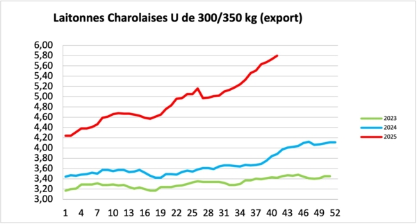 Dans les femelles, l’offre reste insuffisante avec des éleveurs qui gardent leurs femelles pour le renouvellement des troupeaux. L’activité commerciale reste dynamique dans les Charolaises, Limousines ou Blondes d’Aquitaine, destinées au marché italien pour une production de babynettes, plébiscitées par les GMS (carcasse plus légère et qualité plus homogène). Les tarifs tendent néanmoins à se stabiliser après les hausses de ces dernières semaines.
