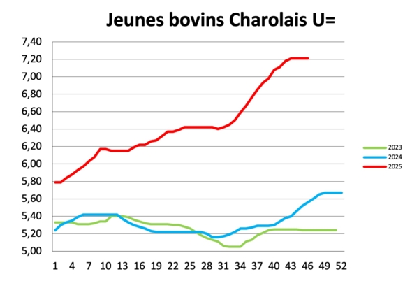 Jeunes bovins – L’activité commerciale est soutenue par la faiblesse des volumes disponibles sur le marché. La demande à l’export est plus régulière, avec un marché qui devrait rester soutenu pour la fin de l’année. Le placement du JB sur le marché français est en revanche plus préoccupant, avec des tarifs qui pénalisent les ventes notamment dans le secteur halal. La tendance est à la stabilisation des prix pour l’ensemble des races à viande. Les JB laitiers sont quelque peu impactés par la baisse des réformes laitières.