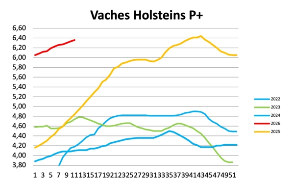 Les industriels œuvrent pour limiter la hausse des prix, malgré une concurrence toujours très forte pour couvrir les volumes nécessaires au fonctionnement des abattoirs. Ils sont très soucieux, car les volumes vont encore s’amoindrir dans les prochains mois. Les prix de la semaine progressent modérément pour les vaches Holsteins, Normandes et les Montbéliardes. Les taureaux de réformes sont recherchés et bien valorisés.