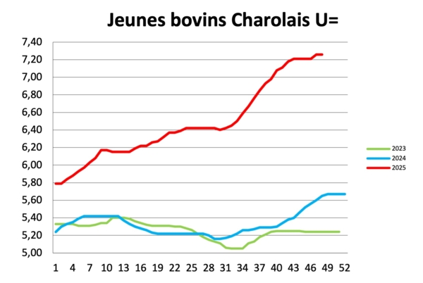 Jeunes bovins : Les volumes vont fortement progresser pour servir le marché italien pour les fêtes de fin d’année. Les tarifs seront facilement reconduits.