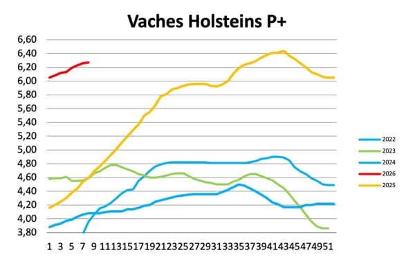 Réformes laitières – Les industriels sont toujours à la recherche de minerai, avec des besoins qui vont se renforcer pour la fin des vacances d’hiver et le début du mois. Le niveau de l’offre reste très correct pour la saison alors que l’an dernier le déficit était déjà important. Cette situation est due à un décalage de production lié à la FCO. Les abatteurs notent également plus de disponibilité en raison de la tension observée sur le prix du lait. Le creux de production sera plus tardif, mais peut-être plus violent. Le commerce reste fluide dans les réformes laitières, mais une stabilisation des prix est observée cette semaine chez les gros opérateurs. La demande reste soutenue dans les taureaux de réformes, face à la forte demande en minerai.