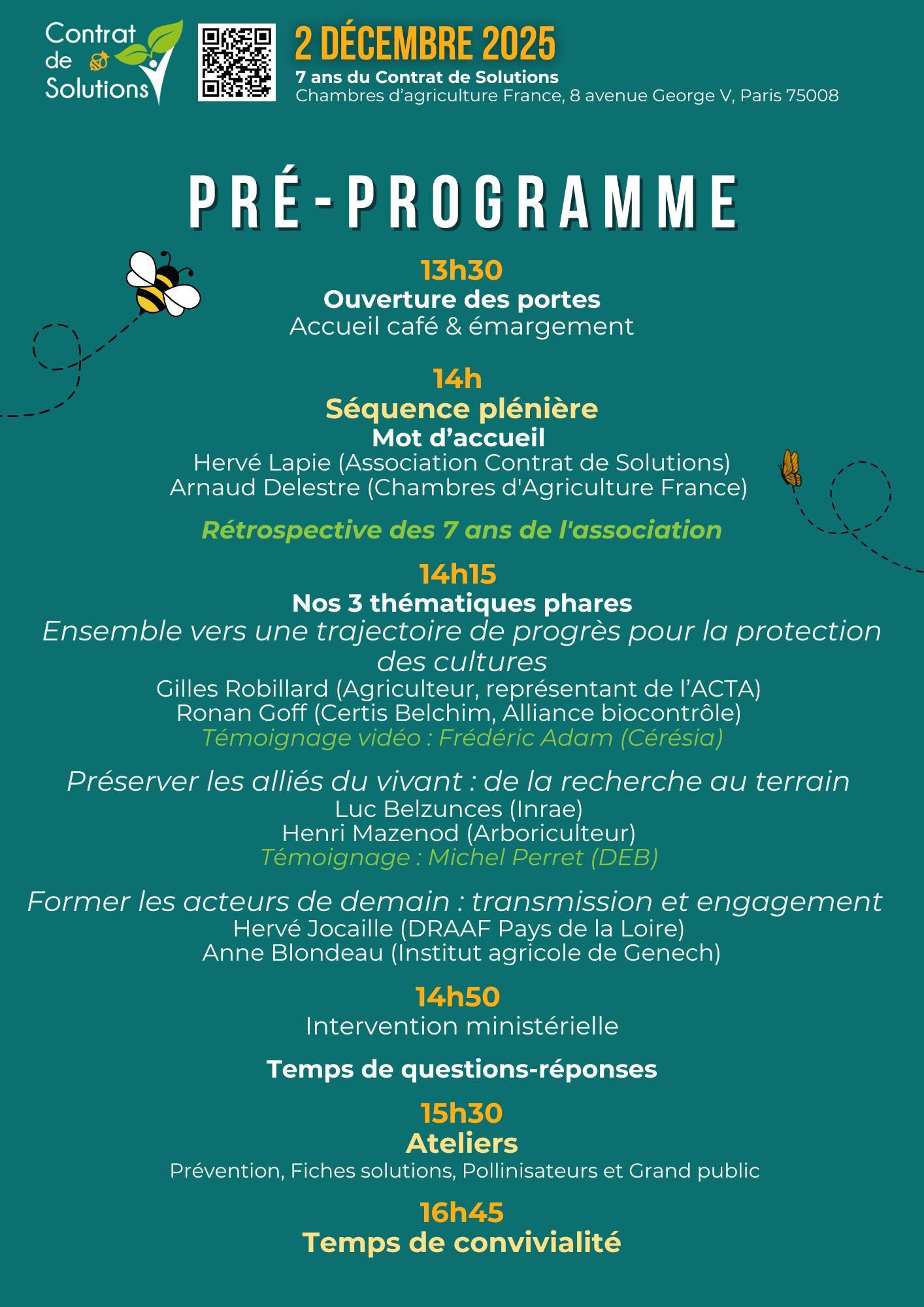 Nous réunirons les 44 structures nationales agricoles membres du Contrat de Solutions, les réseaux de terrain, les pouvoirs publics et les structures qui soutiennent notre démarche. Cet évènement sera une belle opportunité de dresser un bilan de nos actions et de nos ambitions, le tout en présence de la presse!