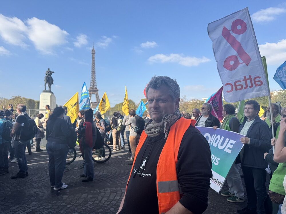 « UE-Mercosur, c'est pas du fumier, mais ça pue pareil et ça fait rien pousser », a chanté une foule joyeuse partie des Invalides en fin de matinée et arrivée dans l'après-midi aux pieds de la Tour Eiffel pour « un grand pique-nique solidaire ». Sous le soleil d'automne, l'ambiance était bon enfant, l'encadrement sécuritaire léger et les manifestants donnaient de la voix contre un accord « catastrophique », selon la Confédération paysanne, à l’initiative de cette manifestation. Dans le cortège, les nombreux drapeaux jaunes du syndicat côtoyaient ceux du Modef, de Terre de Liens, d’Attac, de Greenpeace, de la CGT, et des autres organisations ayant rejoint l’appel.