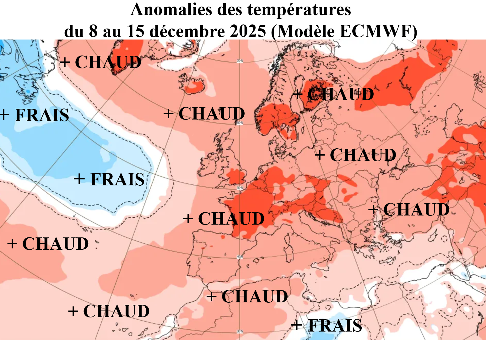 La question est de savoir si le début de l’hiver (l’hiver météorologique commence le 1er décembre et se termine les 28 ou 29 février) sera dans la continuité de cet automne ? Alors quelle est la tendance pour cette 1ère quinzaine de décembre 2025 ?