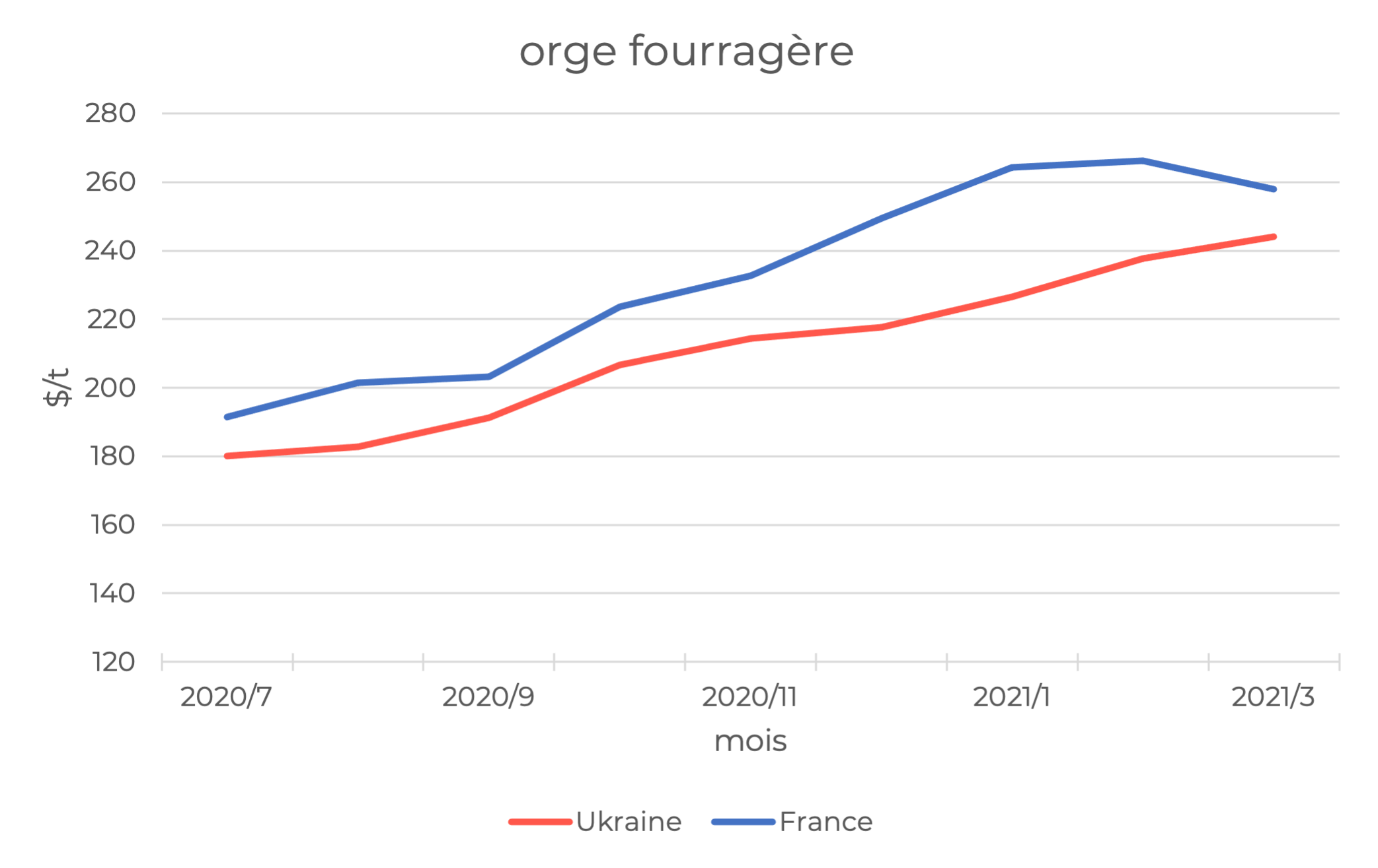 [Tallage - Analyse Moyen Terme] Au 19 mars l’orge fourragère rendu Rouen était cotée à 200,5 €/t en base juillet, en baisse de 6 €/t par rapport au 15 février dernier. Les cours de l’orge ont décliné pour le deuxième mois consécutif. L’orge fourragère a suivi la baisse des prix du blé, de manière un tout petit peu moins marquée. Les prix de la nouvelle récolte ont suivi aussi, perdant presque 5 €/t à 197,5 €/t rendu Rouen en base juillet.