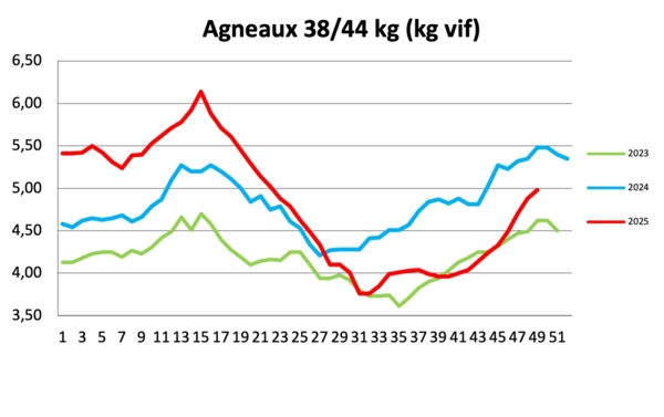 Agneaux – Après une fin de mois très compliqué au niveau des ventes dans les abattoirs, la demande est un peu plus régulière sur ce début décembre, mais la vente se retrouve impactée par le niveau des prix des agneaux. La faiblesse de l’offre et la proximité des fêtes de fin d’année entraînent une animation commerciale sur l’ensemble des marchés, avec des tarifs qui sont plus soutenus dans l’ensemble des catégories.