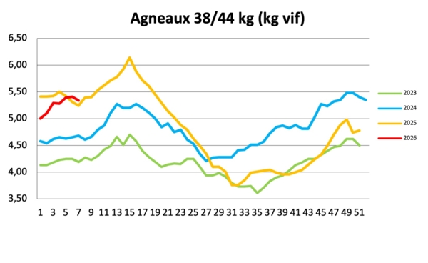 Agneaux – Si le début de mois a enregistré des ventes plus convenables dans les magasins à la faveur d’actions commerciales, l’agneau n’est pas un produit plébiscité à cette période de l’année avec un recul des ventes en boucherie et GMS. Néanmoins, les volumes en laitons sous signe de qualité restent en nombre limité, ce qui permet une atténuation de la baisse. Dans les agneaux gris ou lourds, la tension est temporairement amoindrie par la proximité du ramadan. Les grosses sorties de Lacaunes fourniront une grande partie de la viande ovine halal.
