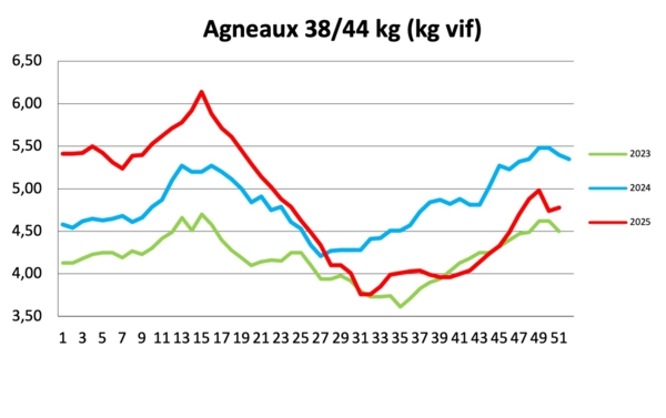 Agnelets – L’offre saisonnière est en retard avec un impact de la FCO3 sur les agnelages. Le commerce est assez ferme pour les premiers échanges.