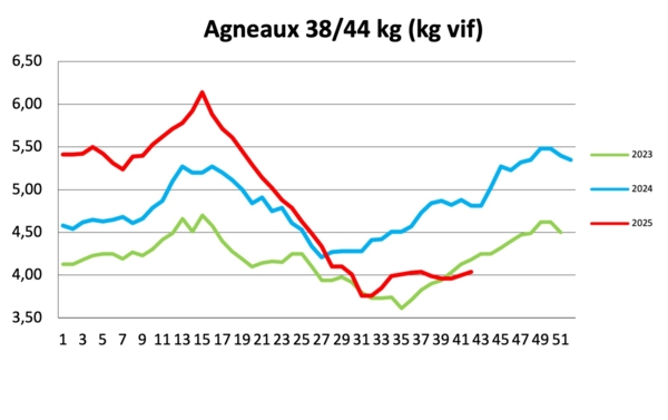 Agneaux – Le contexte reste tendu au niveau des ventes en magasin. Les abatteurs sont très réservés dans leurs commandes, mais du côté de la production, les disponibilités saisonnières sont plus limitées. Face à ce paysage contrasté, les tarifs redressent légèrement dans les bons agneaux, alors que les lourds restent pénalisés.