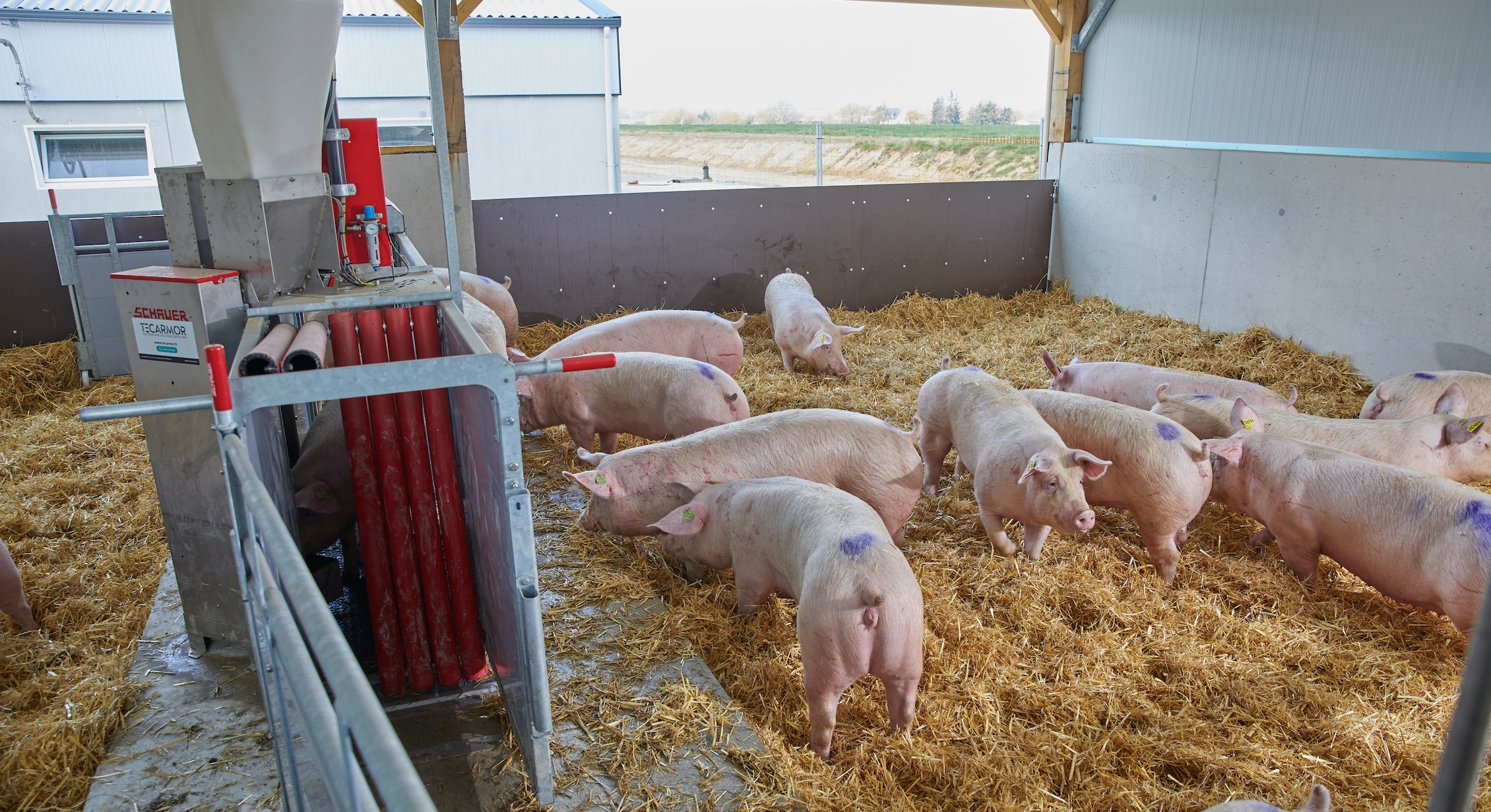 Au chapitre du pilier environnemental de la durabilité, il faut citer la ventilation naturelle générée par des ouvertures thermorégulées et la gestion des déjections. Sous les zones sur caillebotis, des racleurs en V évacuent les déjections et séparent l’urine des fèces pour réduire les émissions d’ammoniaque. Les fosses sont couvertes pour limiter les déperditions vers l’atmosphère. Les déjections sont ensuite compostées avant leur valorisation au champ.