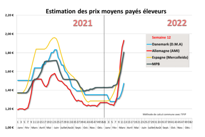 [Note hebdomadaire semaine 12 -2022] La faiblesse de l’offre soutient toujours les prix du porc sur les places de cotation en Europe. Comme constaté déjà la semaine précédente, l’ampleur des hausses est à présent plus mesurée en Europe du Nord, là où les variations de cours avaient carrément explosé durant deux semaines consécutives.