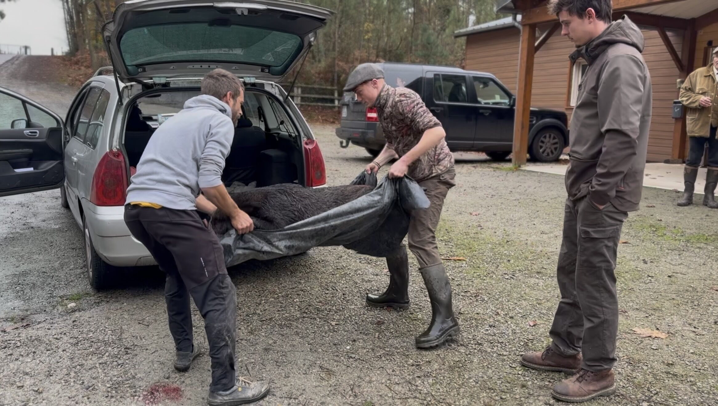 Le rendez-vous n’est confirmé qu’une fois les animaux tués, car « la chasse, c’est de l’imprévu », rappelle Loïc Lehalle. Les consommateurs se rendent aussitôt sur le lieu fixé pour récupérer leur bête. Pour respecter la réglementation, les animaux doivent être récupérés entiers, éviscérés, sous peau : ce sera au consommateur de réaliser la découpe. « Mais on trouve des tutos sur internet », souligne Loïc Lehalle, qui rappelle que sur un sanglier, « le ratio est 55 kg plein, 40 kg vidé et 14 kg de venaison nette ».