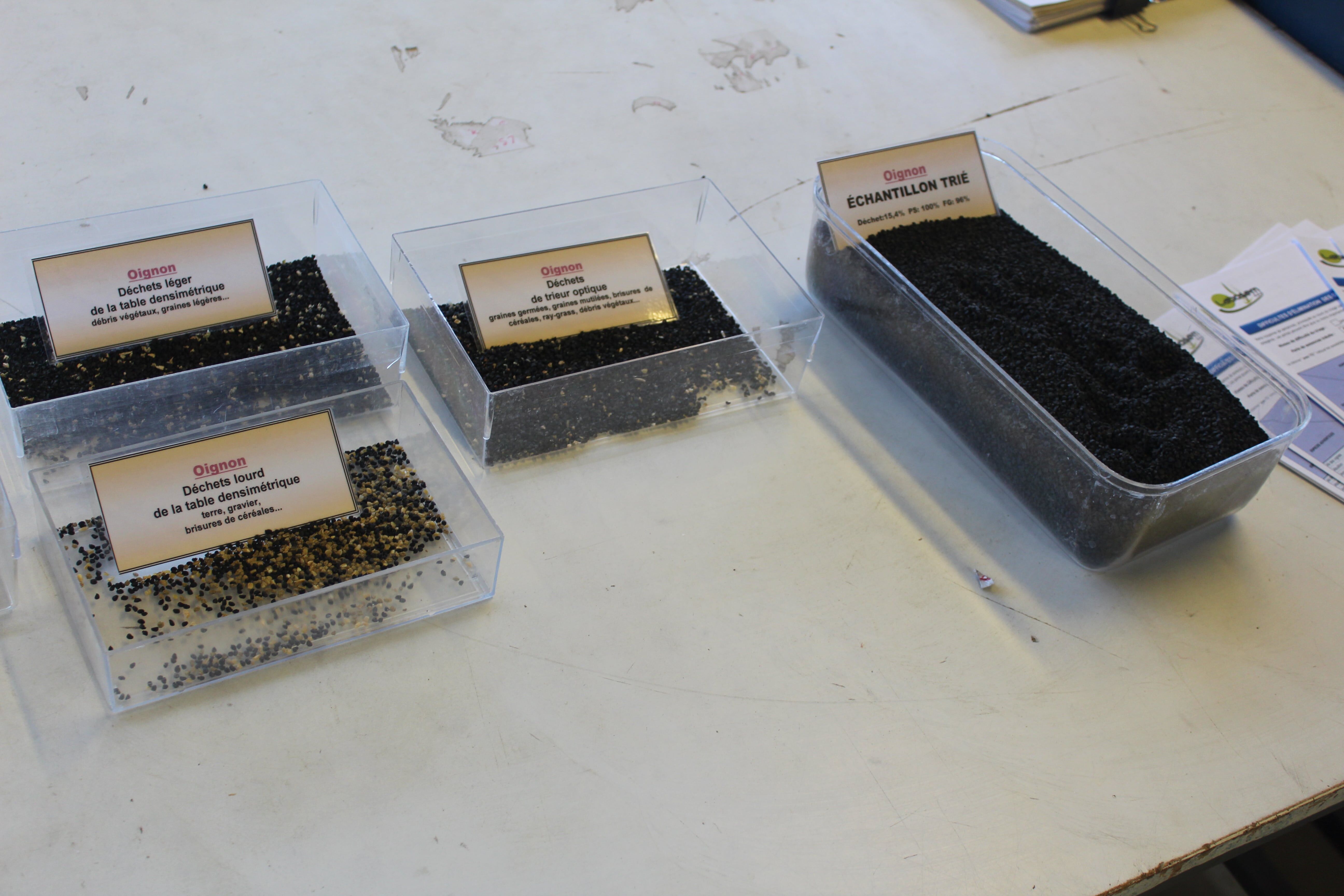 Pour obtenir ce bilan complet, l’échantillon de graines passe en premier lieu par une série de machines miniatures qui simulent le travail qui sera ensuite réalisé en usine sur l’ensemble du lot. Selon leur forme ou leur densité, les graines passent par des outils différents.