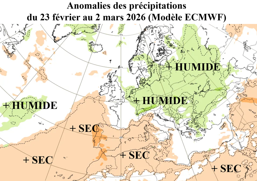 Entre le mardi 17 et le vendredi 20 février : les conditions météorologiques seront encore et toujours perturbées avec le passage de fronts océaniques plutôt actifs. Ils s'accompagneront d’un vent, de secteur sud-ouest à ouest, avec des risques de coups de vent, voire davantage localement. Il neigera sur les reliefs mais principalement sur les Alpes et les Pyrénées, à moyenne altitude. Quant aux températures, elles se maintiendront 2 à 3 degrés au-dessus des normales climatiques.