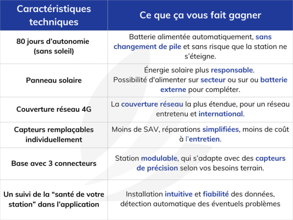 - Votre station, elle, embarque un logiciel permettant des mises à jour automatiques et à distance, sans besoin de repasser sur place. Ainsi, elle reste toujours au top de sa forme !
