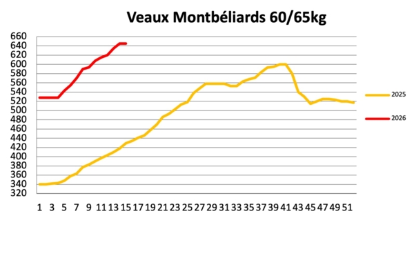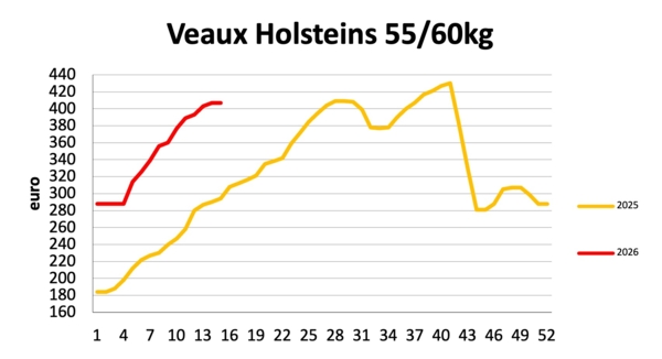 Veaux d’engraissement et d’élevage – Malgré une offre qui se rétracte sérieusement et amplifiée par les travaux de saison, les intégrateurs mettent la pression sur les prix. Ils sont soucieux de la progression des coûts de production et de la baisse des prix de la viande de veau, qui mettent à mal l’équilibre économique de la filière vitelline. Les baisses annoncées sont surtout destinées à stopper la hausse des veaux laitiers. Les veaux français sont concurrencés sur l’Espagne par une offre plus abondante et moins chère de veaux irlandais. Les gros Montbéliards restent très bien valorisés sur l’Espagne. Les veaux croisés subissent également une pression venue des intégrateurs avec une moindre concurrence de l’Espagne.