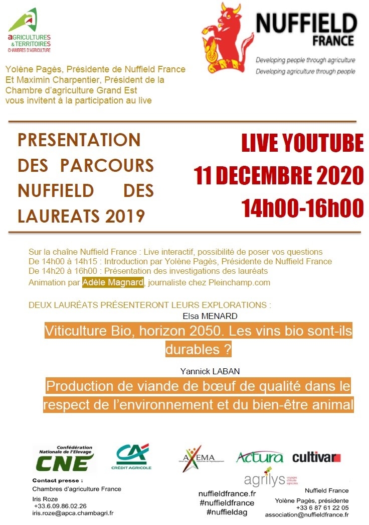Vendredi 11 décembre 2020, participez et échangez en direct avec les deux lauréats de la bourse Nuffield 2019, qui présenteront leurs parcours en live sur Youtube.
