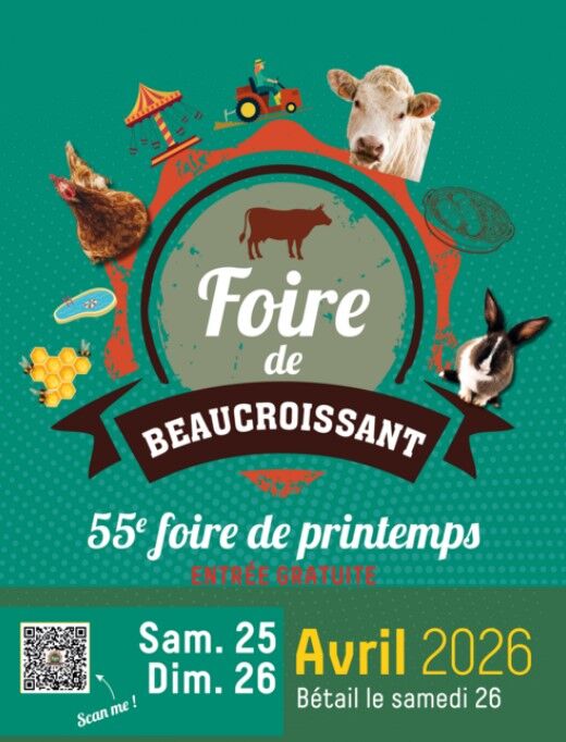 La Foire de Printemps de Beaucroissant revient les samedi 25 et dimanche 26 avril 2026 ! Deux jours d’animations, de découvertes et de rencontres entre exposants, producteurs, artisans et visiteurs dans une ambiance conviviale et authentique.
