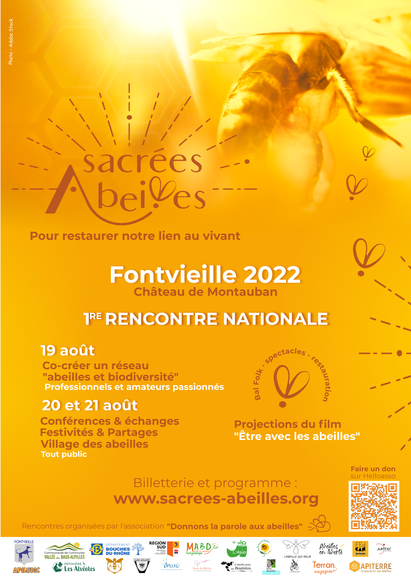 Les rencontres Sacrées Abeilles est un premier événement de 3 jours, fondateur et innovant, qui rassemble des amis et protecteurs des pollinisateurs, des apiculteurs qui se questionnent sur l’avenir de l’abeille, des experts, des chercheurs reconnus, des jardiniers, des agriculteurs, des artistes…